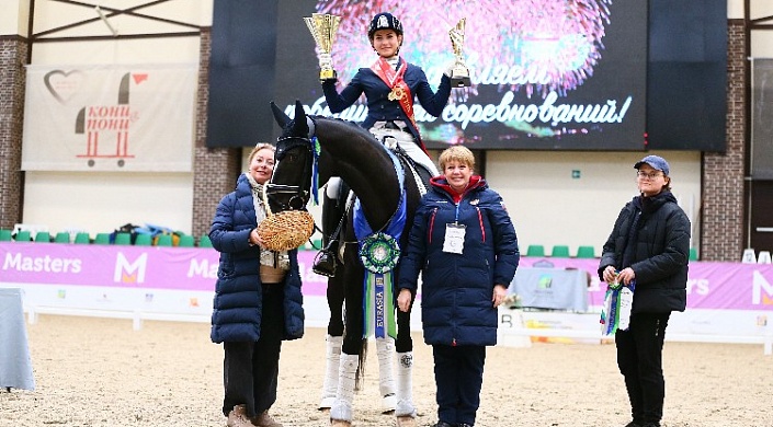 Александра Карташова и кобыла Соль Дель Мар стали обладателями Кубка MAXIMA MASTERS Евразия, пара заняла первые места в Среднем Призе №1 и КЮРе Среднего Приза. Второе место и в КЮРе, и в Абсолютном Первенстве - у Антона Балакирева и Росадо, бронзовые медали заработали Софья Пономарева и мерин Федрик.